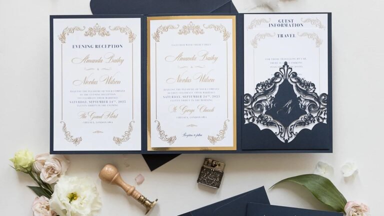 Where to Order Navy Blue and Gold Wedding Invitations